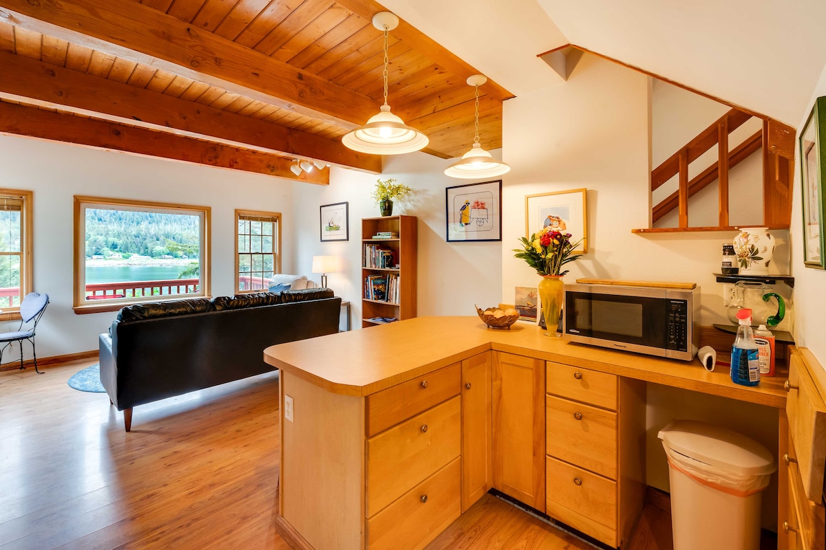Faites une pause et détendez-vous dans ce tout nouveau loft paisible avec vue sur l'océan à Indian Cove. Proche d'Auke Rec pour des balades sur la plage ou le sentier. Il y a une vue sur l'océan filtrée de la crique à l'avant du salon et de la terrasse couverte, et une vue de l'autre côté de la cuisine. Le terminal de ferry est à proximité, et il se trouve à cinq minutes en voiture des magasins et de l'aéroport. CBJ1002399