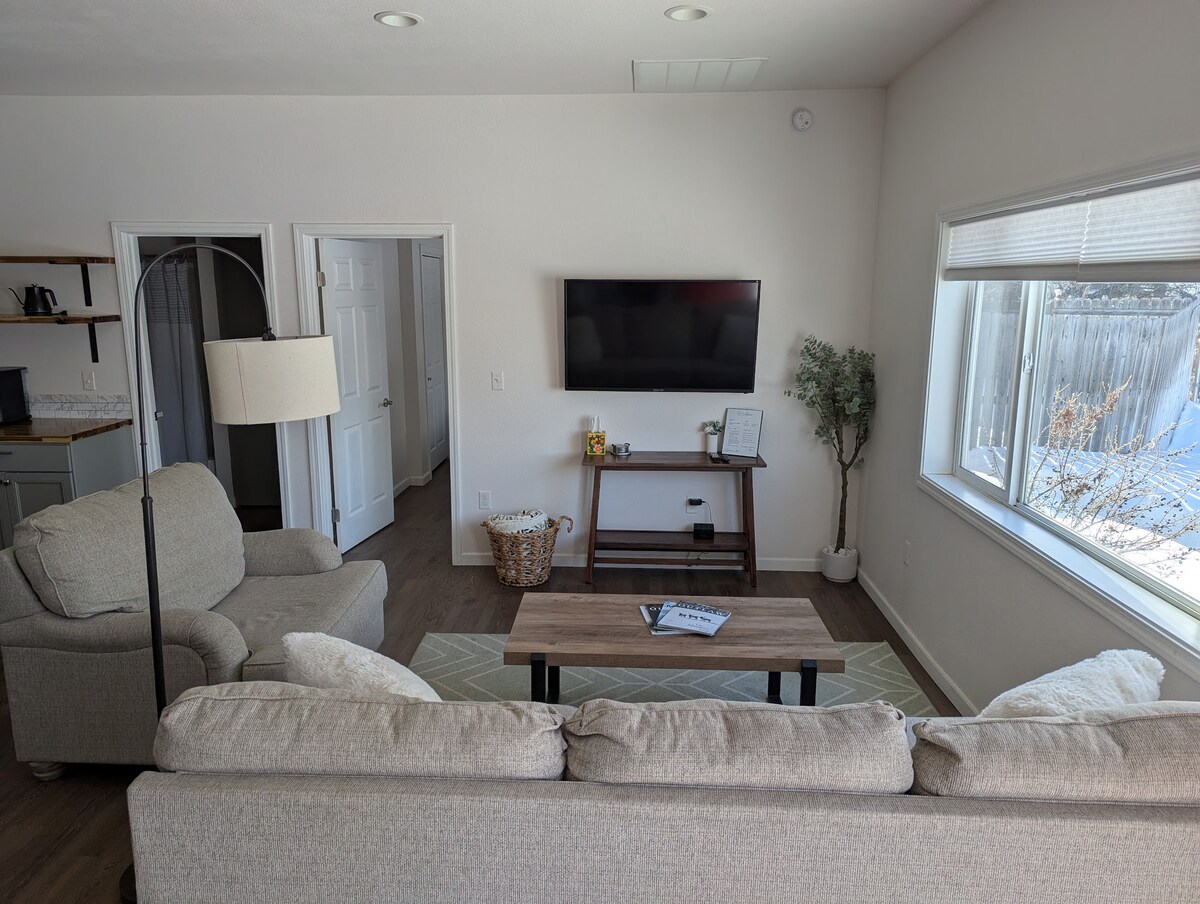 Faites simple dans cet appartement paisible et central. Que vous vous reposez après avoir atteint les pistes ou que vous vous soyez évadé pour venir profiter de toute la nature que la vallée a à offrir, vous trouverez qu'il est facile de profiter du temps libre ici. Cet appartement contemporain est à seulement 7 minutes de l'aéroport et à 15 minutes du centre-ville de Bozeman. Profitez de la rue principale de Belgrade et de ses divers restaurants à quelques pâtés de maison !