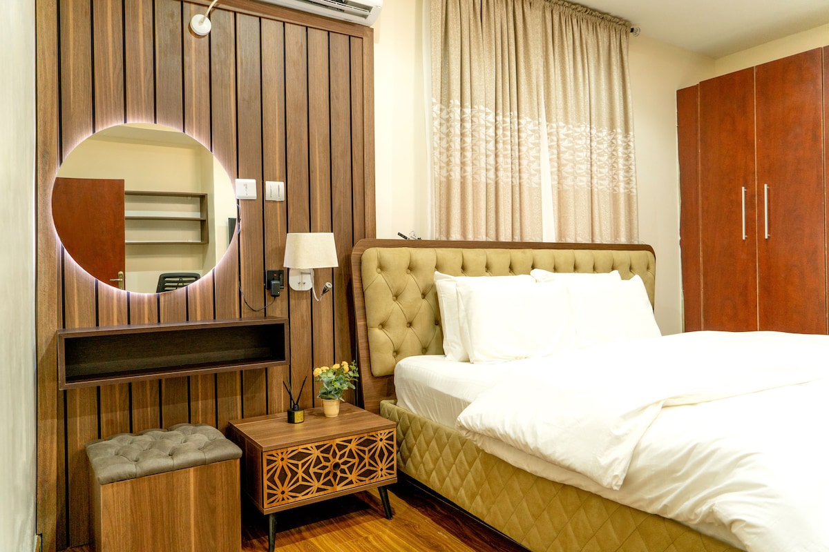 Découvrez un confort raffiné dans ce paradis élégant et spacieux de 2 chambres au cœur d'Abuja. À quelques minutes de Banex Plaza et de Wuse 2, cette retraite sereine offre des finitions élégantes et modernes, des balcons privés avec une vue imprenable sur la ville, une assistance dédiée 24 h/24 et 7 j/7 et une alimentation électrique 24 h/24 et 7 j/7 pour assurer un séjour sans accroc. Parfait pour les voyageurs qui apprécient l'intimité, la sophistication et toutes les petites touches de luxe qui rendent un séjour vraiment mémorable. Offrez-vous une escapade exclusive à Abuja. Réservez maintenant et faites-vous plaisir