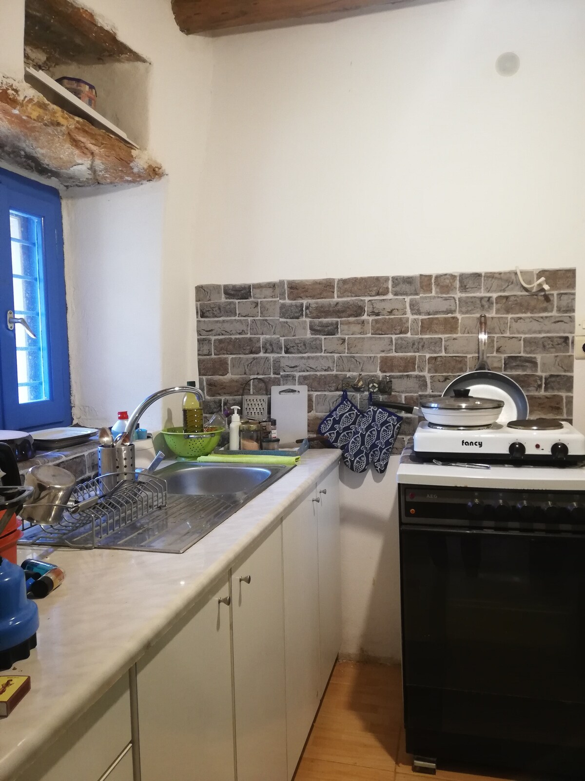 Il s'agit d'une maisonnette récemment construite de 60 m². Au rez-de-chaussée, il y a une cuisine, un salon et une salle à manger et au 1er étage, il y a la chambre et la salle de bain. Elle offre une vue imprenable sur la plage d'Agios Petros et de ses deux terrasses (chambre et salon). Elle est à seulement 3 km du port et à 500 m de la route provinciale. La plage d'Agios Petros est située à 500 m de la maison et dans la région il y a des tavernes et une boulangerie.