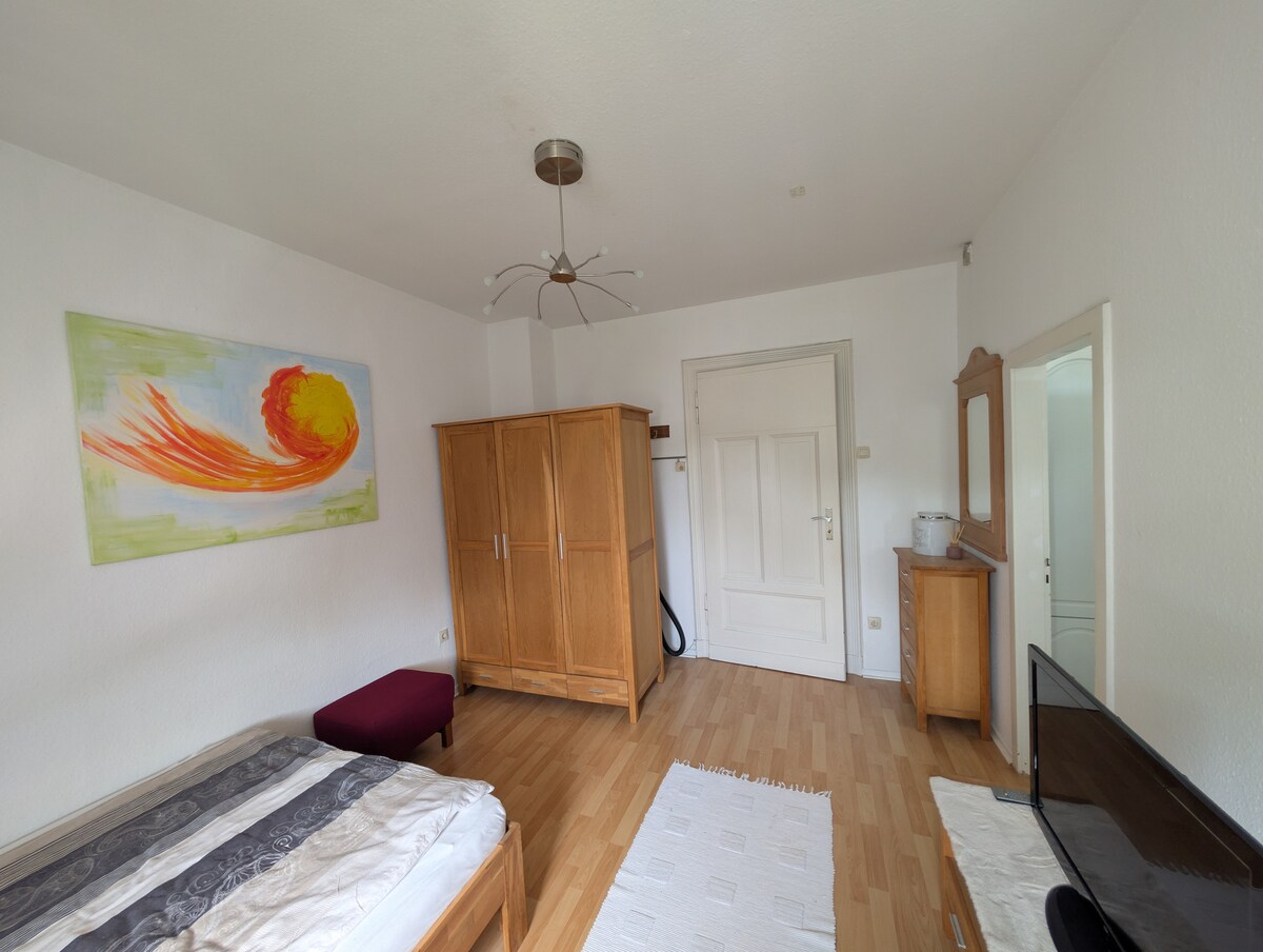 Appartement confortable, situé au centre avec salon/chambre à coucher - lit, fauteuil, armoire, buffet avec TV. La cuisine offre une petite kitchenette, une cuisinière à 2 plaques, une table avec 2 chaises, une machine à café, une bouilloire, un grille-pain et une douche. Les toilettes sont situées à mi-escalier et sont exclusivement à la disposition des locataires de l'appartement. Ligne de tramway 107 à quelques mètres, Musiktheater avec d'autres liaisons de transports en commun à 10 min. Jardin municipal à 2 min.