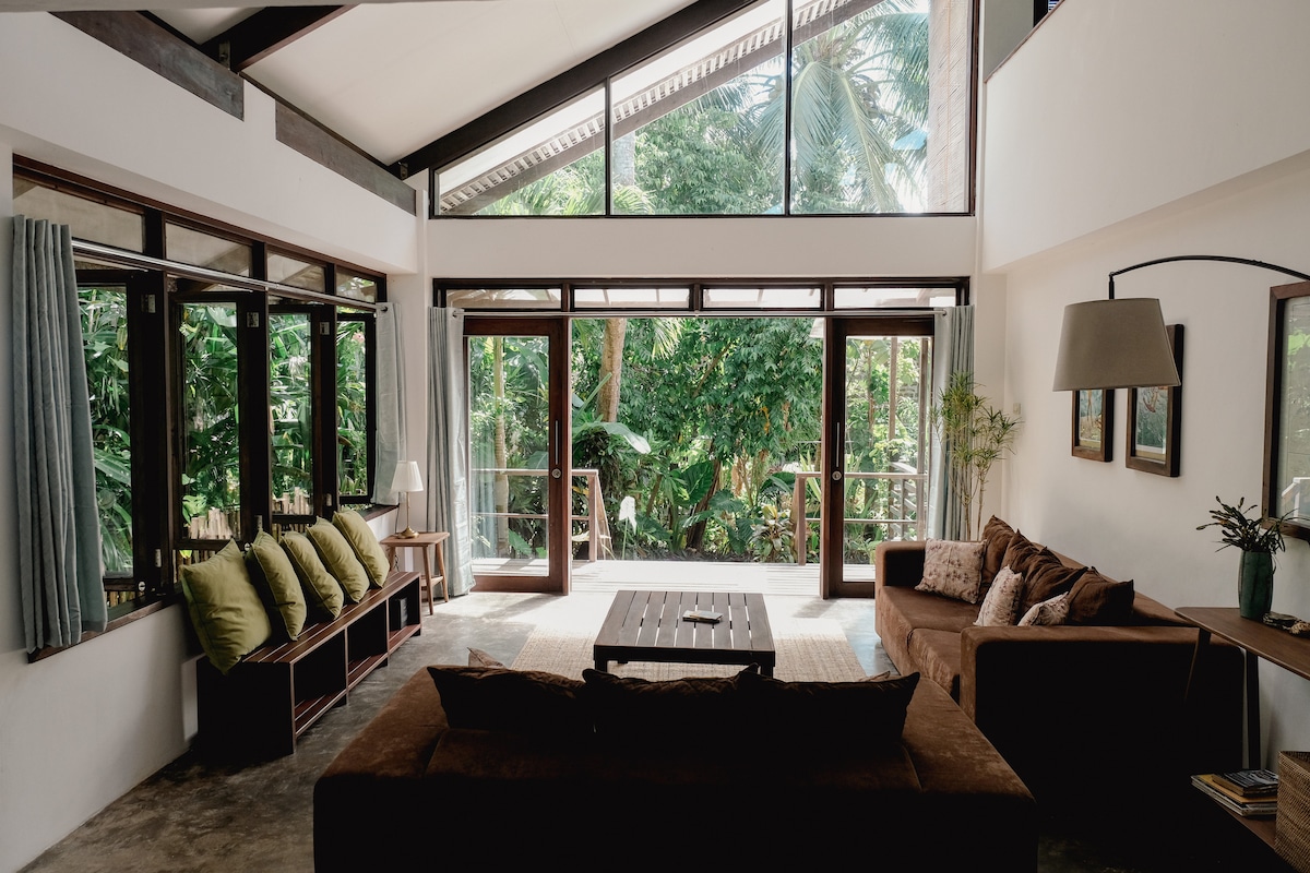 Vie confortable sur l'île. Trois grandes chambres avec lits King Size et matelas moelleux. Une cuisine américaine, un salon et un coin repas avec une télévision de 55 pouces et une enceinte intelligente Mi. WiFi Starlink avec des vitesses allant jusqu'à 200 Mbps. Grandes salles de bains lumineuses avec eau chaude et bonne pression d'eau. Scooters disponibles à la location sur demande. Extrêmement bien situé mais semble isolé et privé. Accès à pied à la plage, aux meilleurs restaurants et cafés.