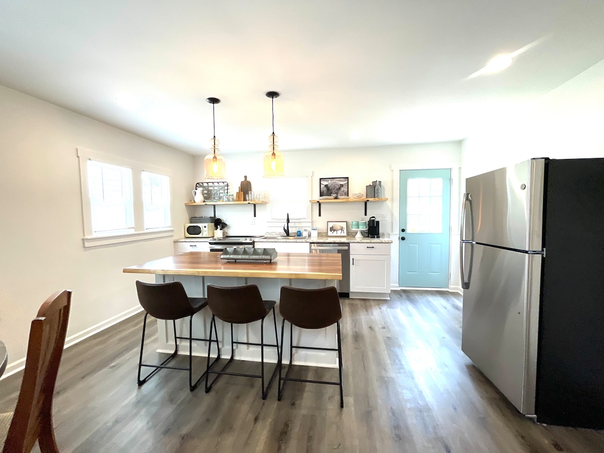 Near Churchill Downs (7mins) UofL (5mins) downtown (10mins) Convention Center (10mins) Fairgrounds (4mins), and close to restaurants, bars and coffee shops. The home offers two bedrooms with queen beds and a pull-out couch in the living room. Enjoy coffee or a relaxing evening on the back deck. The kitchen is fully equipped and the open living space provides a great area for socializing. Locally made art and decor is on display, adding to the uniqueness of the space. No local bookings please!