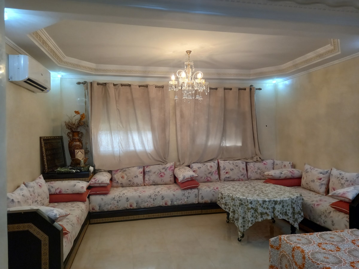 Apt bien équipe contient 2 chambre à coucher ,un grand salon,un séjour ,grande cuisine avec tous équipement (la machine de ligne , réfrigérateur) et un salle de bain et bien un wifi