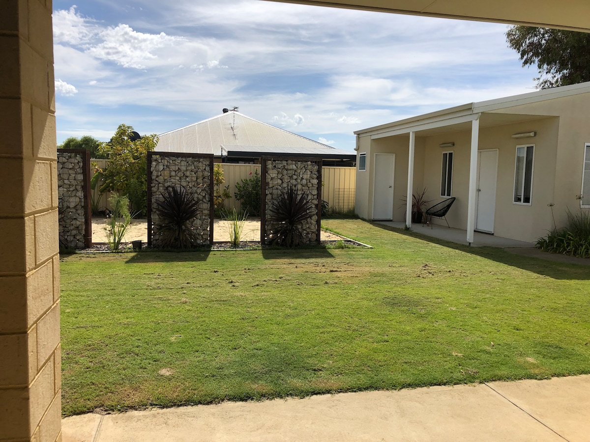 Our accommodation is set on 5 acres with bike paths and other activities. 3 kms from town and beaches. Has a decking with bbq area. Netflix available. Very cosy atmosphere fire for your winter break, also light and bright with a Esperance theme for your summer stay. We also have other listings to suit any dynamics on our property. This is a 2 bedroom house attached to existing house with 2 solid core doors separating. Has double carport. Laundry is shared with owner, has separate entrance.