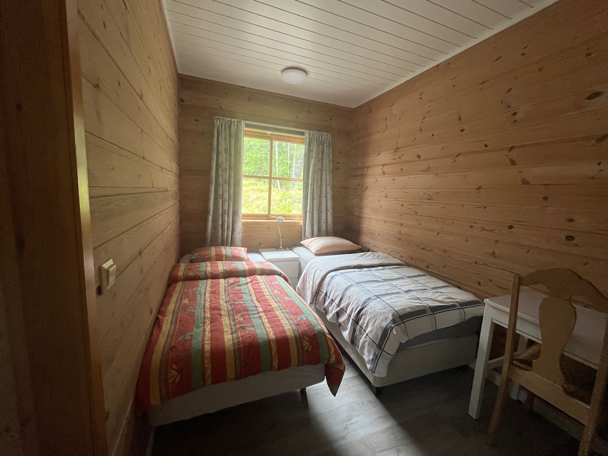 La cabane dispose de 3 chambres spacieuses avec 2 lits doubles et un lit superposé familial. Il y a une grande salle de bain avec lave-linge/sèche-linge. C'est une solution de cuisine-séjour ouverte. Dans la cuisine, tous les ustensiles dont vous pourriez avoir besoin pour cuisiner et entretenus pour 12 personnes sont fournis. Il y a une table à manger pour 8 personnes, etc., un grand canapé, 2 chaises de fret, une cheminée et une télévision. À Tillegg, il y a un grand couloir pour que les vêtements et les chaussures ne soient pas sur la route. Cette nouvelle cabane est prouvée pour que tout soit en surface, c'est-à-dire adapté à tout le monde !