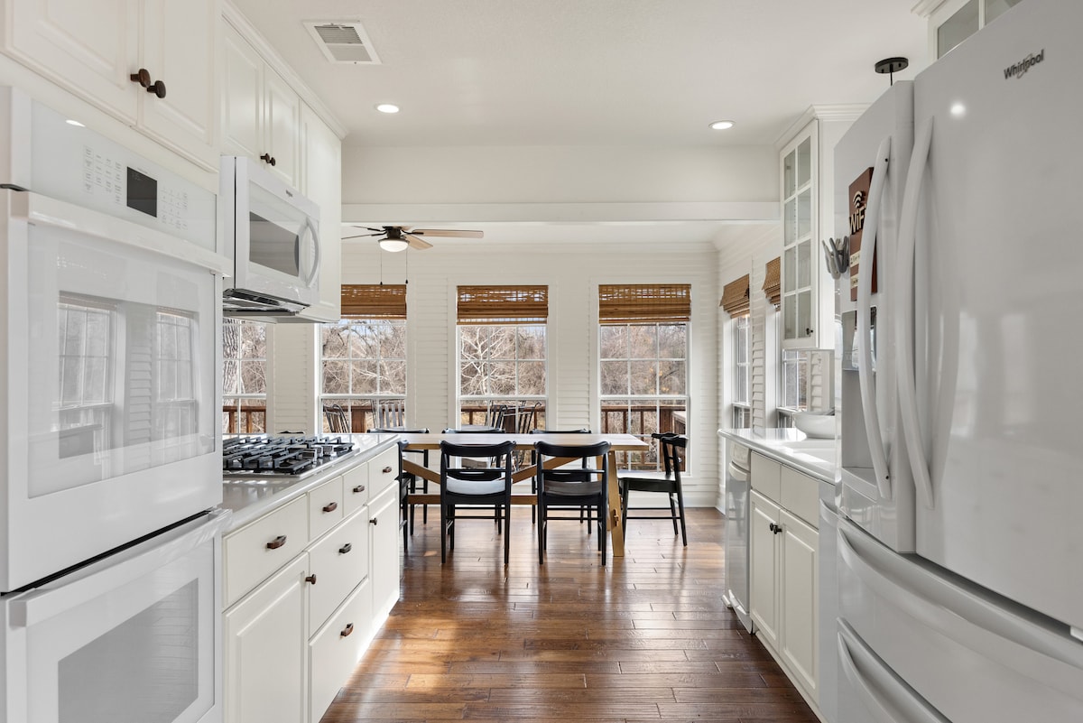 Bienvenue dans notre retraite riverfront de 4 chambres dans la pittoresque Glen Rose. Cette maison au design élégant peut accueillir jusqu'à 13 personnes dans de nouveaux lits confortables, garantissant un séjour reposant pour tout le monde. Nous fournissons une cuisine entièrement équipée, beaucoup de linge de maison, d'excellents équipements et tout le confort d'un chez-soi. À l'extérieur, la vaste terrasse dispose de sièges confortables, d'un coin repas en plein air, d'une télévision extérieure et d'un foyer. De multiples espaces extérieurs offrent quelque chose pour tout le monde, des vues sereines sur la rivière au plaisir de votre propre putting green !