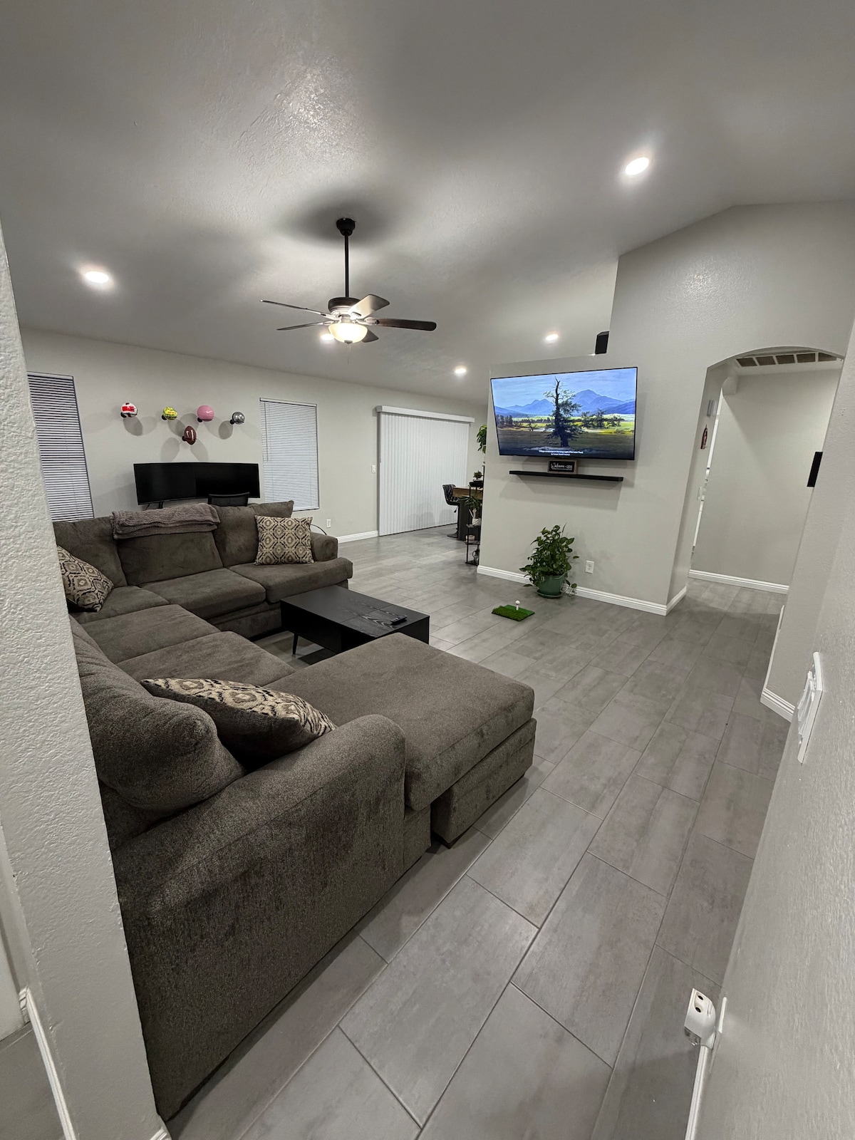 Cet emplacement incroyable se trouve à quelques minutes du Westgate Entertainment District, des magasins d'usine, des restaurants, du complexe sportif de Glendale, de la P83, de l'Arizona Spring Training, à 25 minutes de l'aéroport Sky Harbor, à 20 minutes des aéroports de Deer Valley ou de Glendale. À 10 minutes du centre commercial Arrowhead, du Metrocenter et des principales autoroutes. La maison dispose d'une piscine fermée en galets pour la sécurité des enfants. Wifi, télévision intelligente avec services de streaming, Internet haut débit avec codes QR d'accès facile. Arrivez selon votre propre horaire avec un accès par serrure intelligente. 3 lits, 2,5 salles de bain, piscine, 2 places de parking, maison entièrement meublée à Glendale.