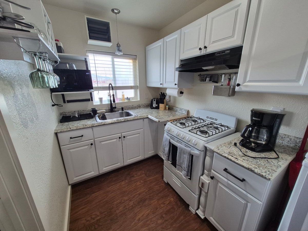 RÉSERVEZ DEUX NUITS OU PLUS ET OBTENEZ UNE RÉDUCTION ! Cette maison unique de 1 chambre et 1 salle de bain peut accueillir jusqu'à 4 personnes et est connue sous le nom de John Paul House. Beaucoup de fenêtres et de lumière naturelle avec vue sur la ville. Goldfield a une grande histoire et de nombreux endroits à explorer. L'International Car Forest est accessible à pied. La plupart de nos voyageurs ne font que passer, le plus grand regret qu'ils ont est de ne pas être restés une nuit de plus pour explorer ce joyau désertique peu connu.