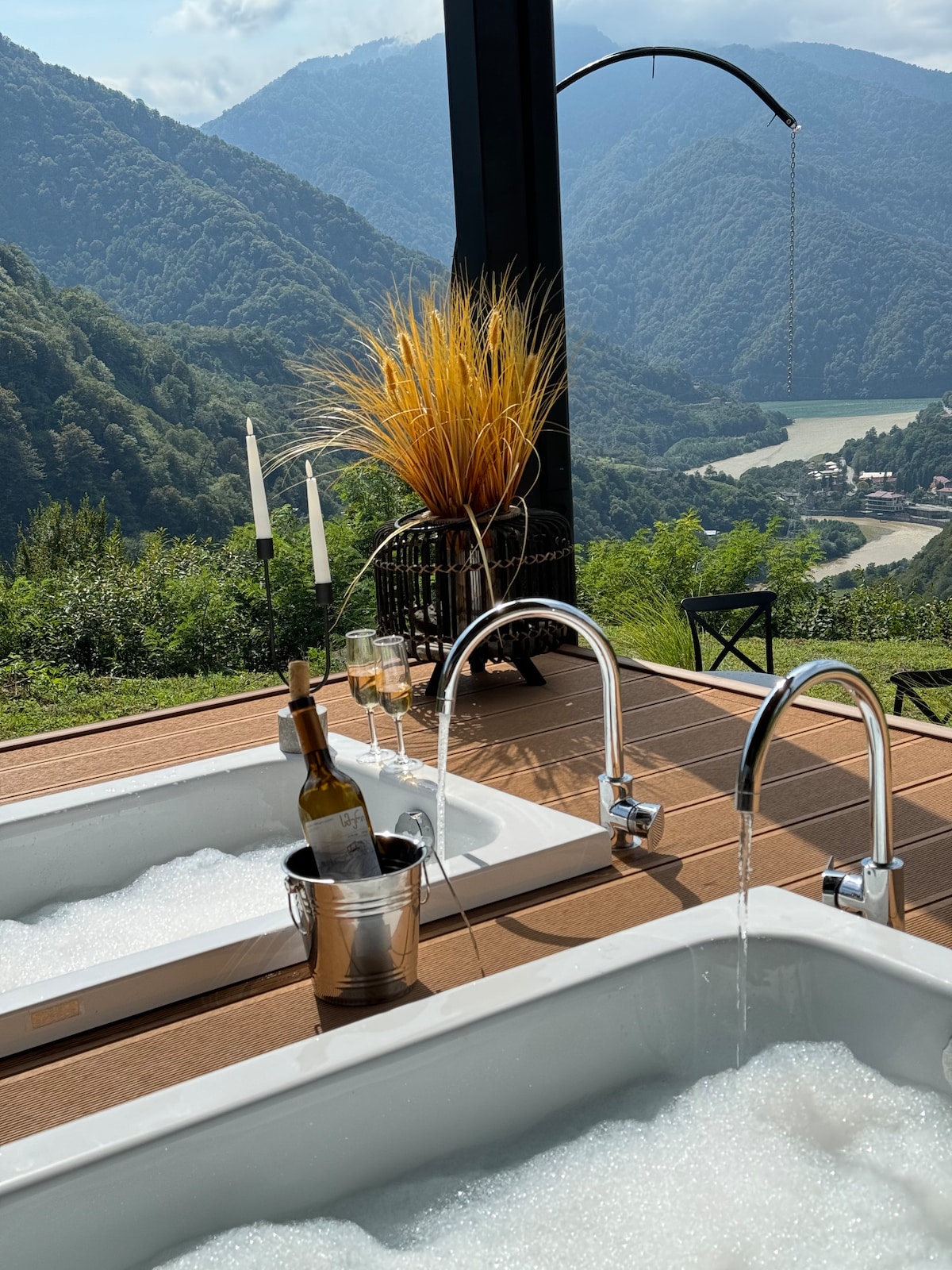 Le prix comprend une visite au parc d'attractions d'une valeur de 160 lari (60 $) pour deux. Détendez-vous dans ce logement calme et élégant avec des chambres panoramiques uniques et un jacuzzi. Notre complexe se compose de chalets et d'un parc avec des emplacements uniques, tels que le plus grand matelas de lit au monde en forme de khachapuri adjarien, ainsi que la plus grande corne à vin de 9 mètres au monde, un immense nid d'oiseau, un chalet en verre, des espaces de détente et bien plus encore.