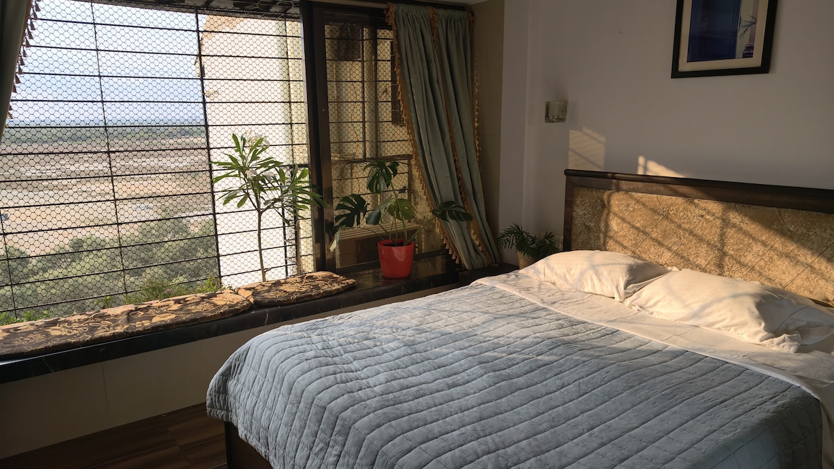 Wake up to rhapsody of chirping birds, gentle sea breeze & magnificent sunrise surrounded by lush greenery. Silver BEACH -5 min Walk Aksa BEACH-15 min drive Smart TVs , AC, Wi-Fi ,a Bath tub. Spend cozy afternoons in the balcony with a book and a cup of coffee ,amidst greenery . Stroll on the beach , Explore beautiful landscaped gardens , Pool & Quaint cafe of the luxury apartment complex , Set in peaceful & tropical neighbourhood of Madh Island Zomato Swiggy & Blinkit delivers