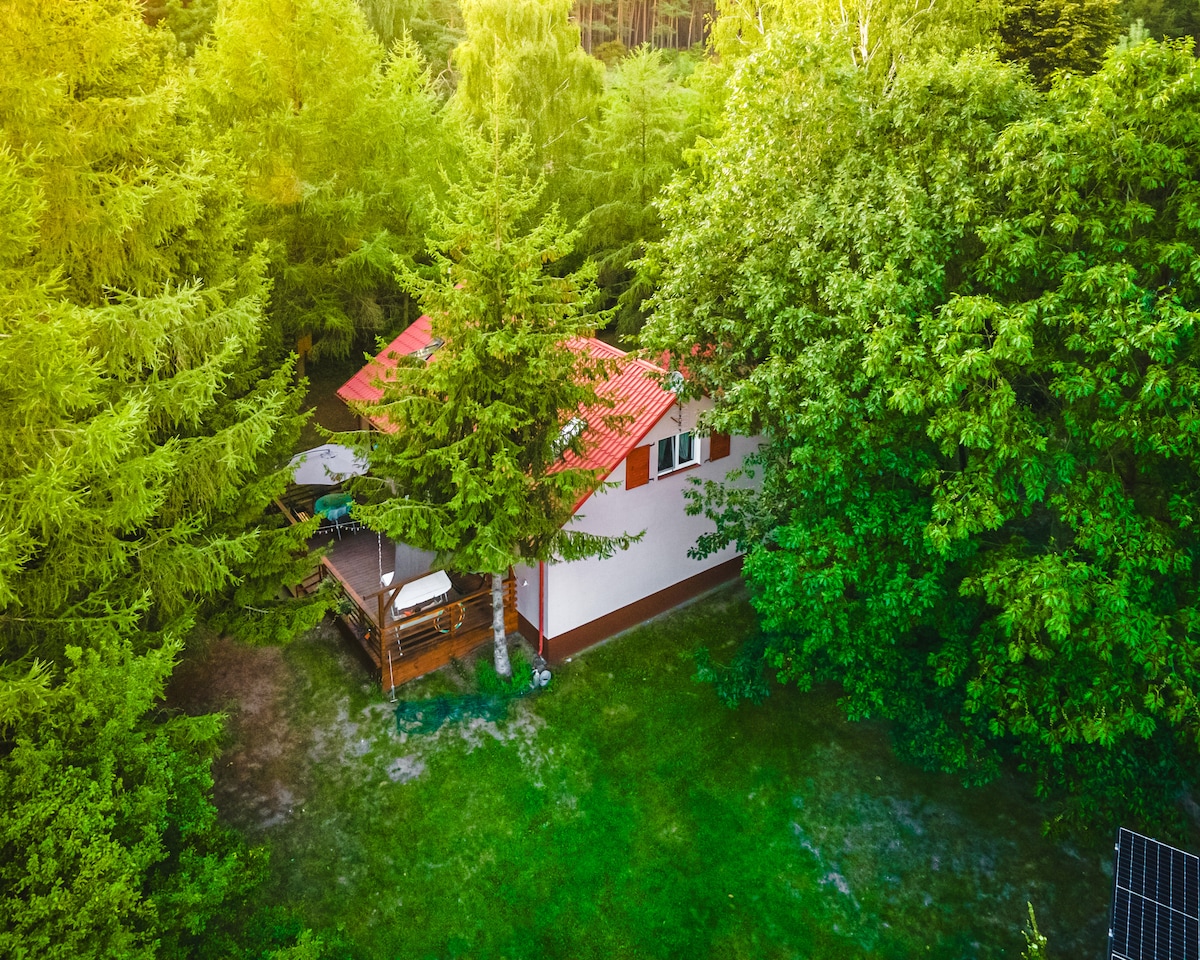 Bienvenue dans un chalet avec vue sur la forêt entouré par la nature situé dans le district du lac Dobrzyń (commune de Skępe, voïvodie de Couïavie-Poméranie) Le quartier se caractérise par une multitude de lacs et de forêts. À proximité immédiate de 3 km Wielkie, Łąkie, Sarnowskie Lakes. Le chalet a tout ce dont vous avez besoin pour vous détendre. Le quartier est calme et paisible. Vous pouvez faire un barbecue et allumer un feu. Il y a une aire de jeux pour les enfants. Le logement de l'hôte est à proximité. Le chalet avant chaque séjour est ozonated.