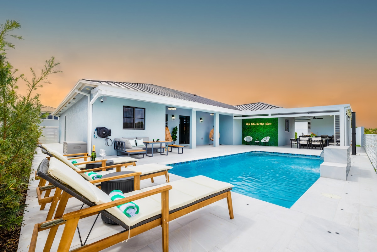 Explorez l'attrait de Miami depuis notre maison moderne et contemporaine, construite en 2021, idéale pour les familles ou les groupes. Nichée dans un quartier sûr et accessible, cette demeure moderne offre à la fois aventure et détente. • Une chambre parentale luxueuse avec un lit queen avec une chaise de massage rajeunissante • Trois chambres supplémentaires, équipées chacune de lits queen confortables. • Une vaste cour arrière avec une cuisine extérieure et un coin salon. • Une cuisine entièrement approvisionnée, prête pour vos aventures culinaires.