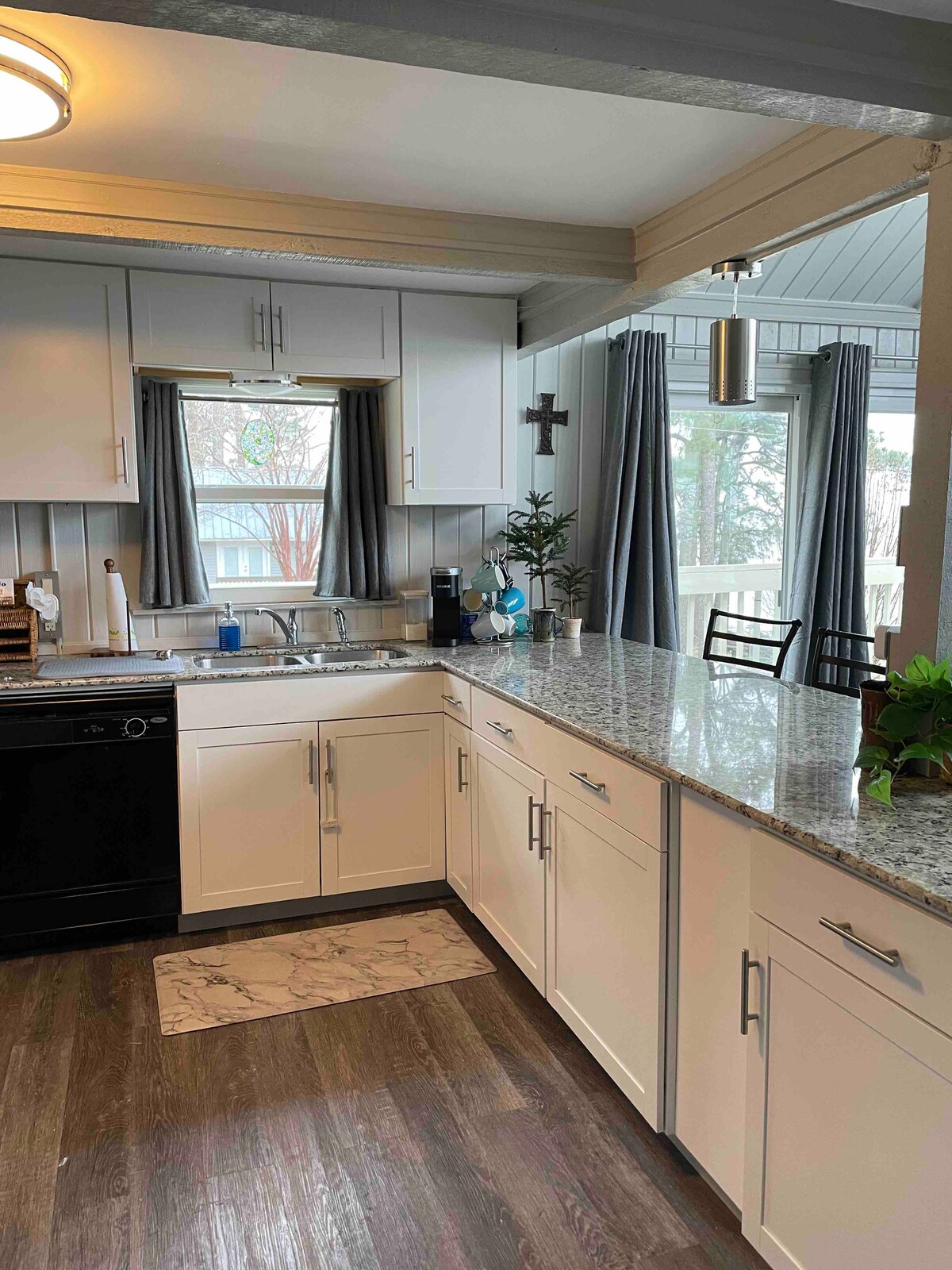 Il s'agit d'un appartement de 552 pieds carrés dans notre maison. Il dispose d'une allée et d'une entrée entièrement privées et d'une porte intérieure à verrouillage sécurisé entre les unités. L'une des caractéristiques qui, selon nous, vous plaira le plus est la douche spacieuse avec toute l'eau chaude que vous pourriez souhaiter ! La kitchenette est prête pour un peu de cuisine si vous le souhaitez. En plus du lit King Size, le canapé se replie dans un lit adapté à un enfant plus âgé ou à un jeune adulte, et un matelas double sur le sol est disponible sur demande.