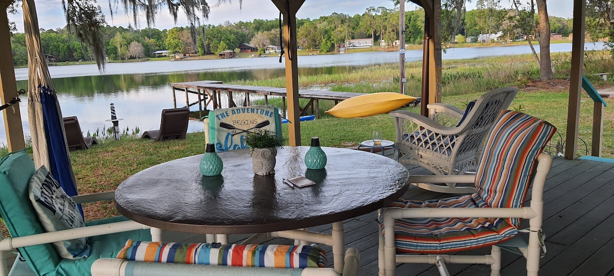 Profitez d'une superbe escapade au lac McMeekin. Le nôtre est un magnifique lac alimenté par des sources avec de beaux levers de soleil. Un quai privé avec table et chaises fait partie du forfait. Notre maison d'hôtes offre une retraite spacieuse, confortable, calme et au bord d'un lac dans la campagne à 30 minutes de Gainesville, Ocala et Palatka. Apportez un kayak ou un canoë... ou du matériel de pêche et pêchez sur le quai ou profitez des nombreux lacs et sources de pêche de la région !