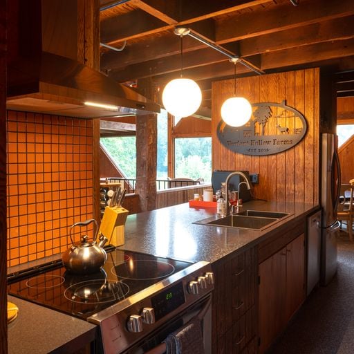 Suivez un sentier boisé jusqu'à un chalet moderne isolé du milieu du siècle, construit en pierre et en bois récupéré d'une montagne russe historique de St Joe's. Des carreaux de céramique rose rétro bordent un étage principal ouvert entouré de portes coulissantes. Vous serez entouré par les grands espaces tout en étant assis confortablement à l'intérieur près de notre foyer électrique. Situé à environ 10 minutes au sud du centre-ville de St. Joe, notre chalet tipi idyllique est un endroit idéal pour l'escapade dans le sud-ouest du Michigan dont vous rêviez.