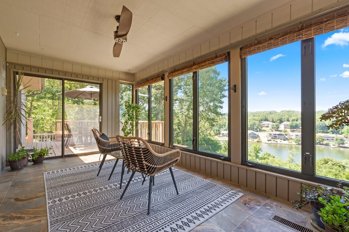 SERENITY COVE is a Beautiful Lake front home, on a cove off the main lake. This is a private lake. Located on a family friendly quiet cul-de-sac. This comfy, remodeled place has new fireplace and wood stove, decks, and a newly completed screened in porch. Quiet area where you can hear the birds sing and relax while you over look the lake. Close to swimming pool, exercise facility, golfing. 20 minutes from downtown Bentonville, Crystal Bridges and bike trails in Bella Vista and Bentonville area.