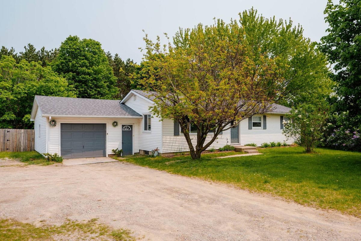 Recently remodeled 3BR/2BA home on 1.5 acres, just 10 mins from Downtown Traverse City! Perfect for beach trips or wine tours. Features a fully equipped kitchen, AC, high-speed Wi-Fi, and flat-screen TVs in the living room and master suite. Relax on the spacious deck overlooking the large yard. Dogs welcome ($25/day per pet). To help guests with allergies, please keep pets off beds/furniture (fee applies). Smart doorbell camera on-site for your security. Fresh, clean, and ready for you!--
