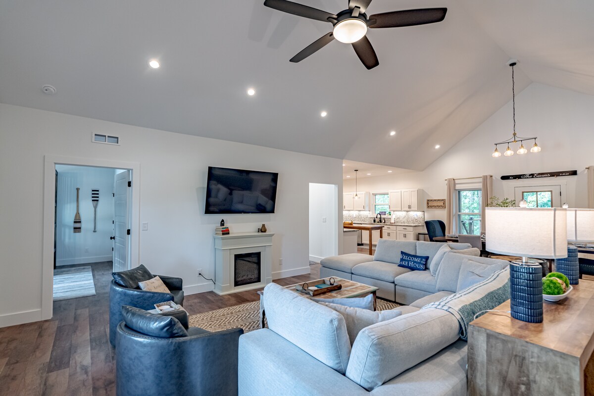 Ce logement paisible offre un séjour détente en famille et entre amis. Bienvenue dans notre maison au bord du lac entièrement équipée avec 3 chambres et 2 salles de bain, et un incroyable espace de divertissement extérieur. Profitez du lever du soleil sur le porche couvert et du coucher du soleil sur le patio arrière couvert avec vue sur le lac. Équipée pour accueillir confortablement 11 personnes, grand espace de stationnement pour les voitures et tous vos jouets. Deux points d'entrée d'allée, prise de chargeur de voiture électrique. À moins d'un mile de la rampe de mise à l'eau publique ! Nous autorisons les animaux de compagnie, mais ils doivent être autorisés.