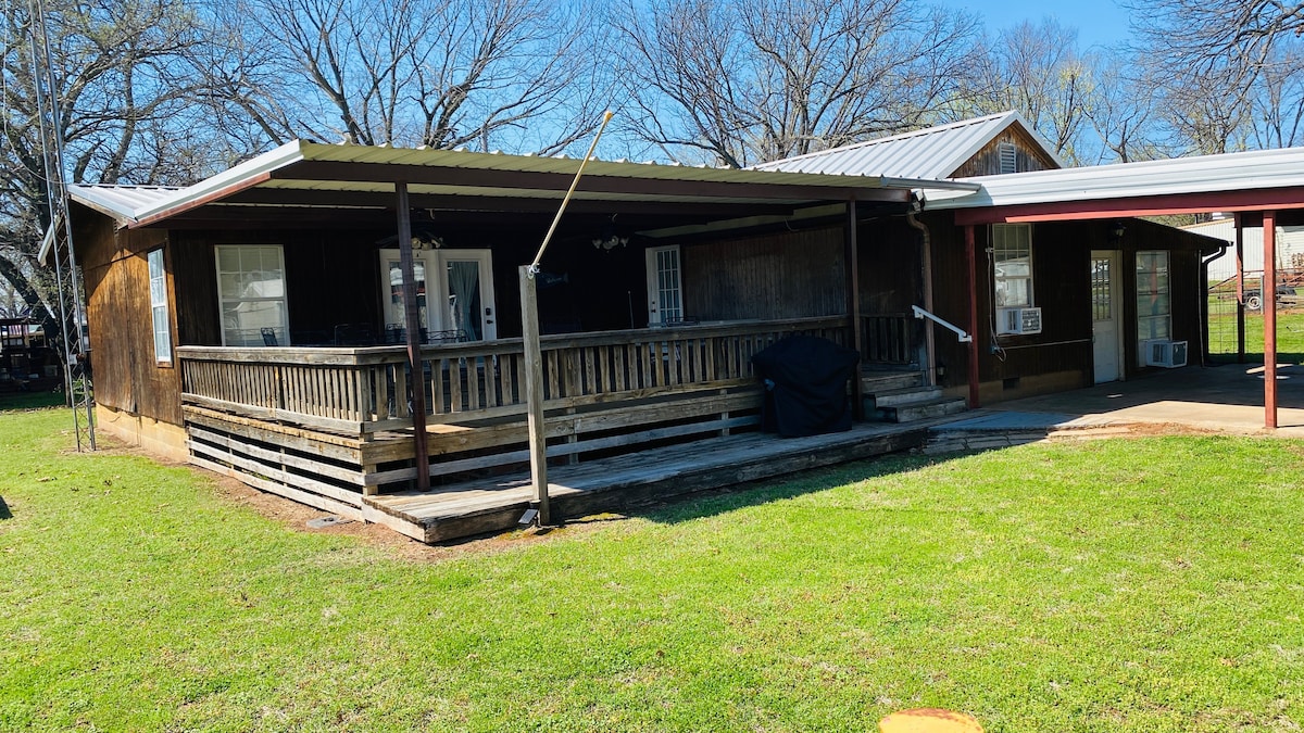 A lake house retreat near Lake Texoma with plenty of room and beautiful views of sunrises and sunsets. A covered back porch with a firepit offers the perfect relaxing setting for you and your guests. Charcot grill. Outside TV & a brand new Hot Tub. Lots of things for the kids to do like basketball, and volleyball outside. Pool table that converts into a ping pong table for the kids to play on and foosball and 10 acres land. PROMOTION: Use our 2 kayaks free of charge when you book 2 days or more.