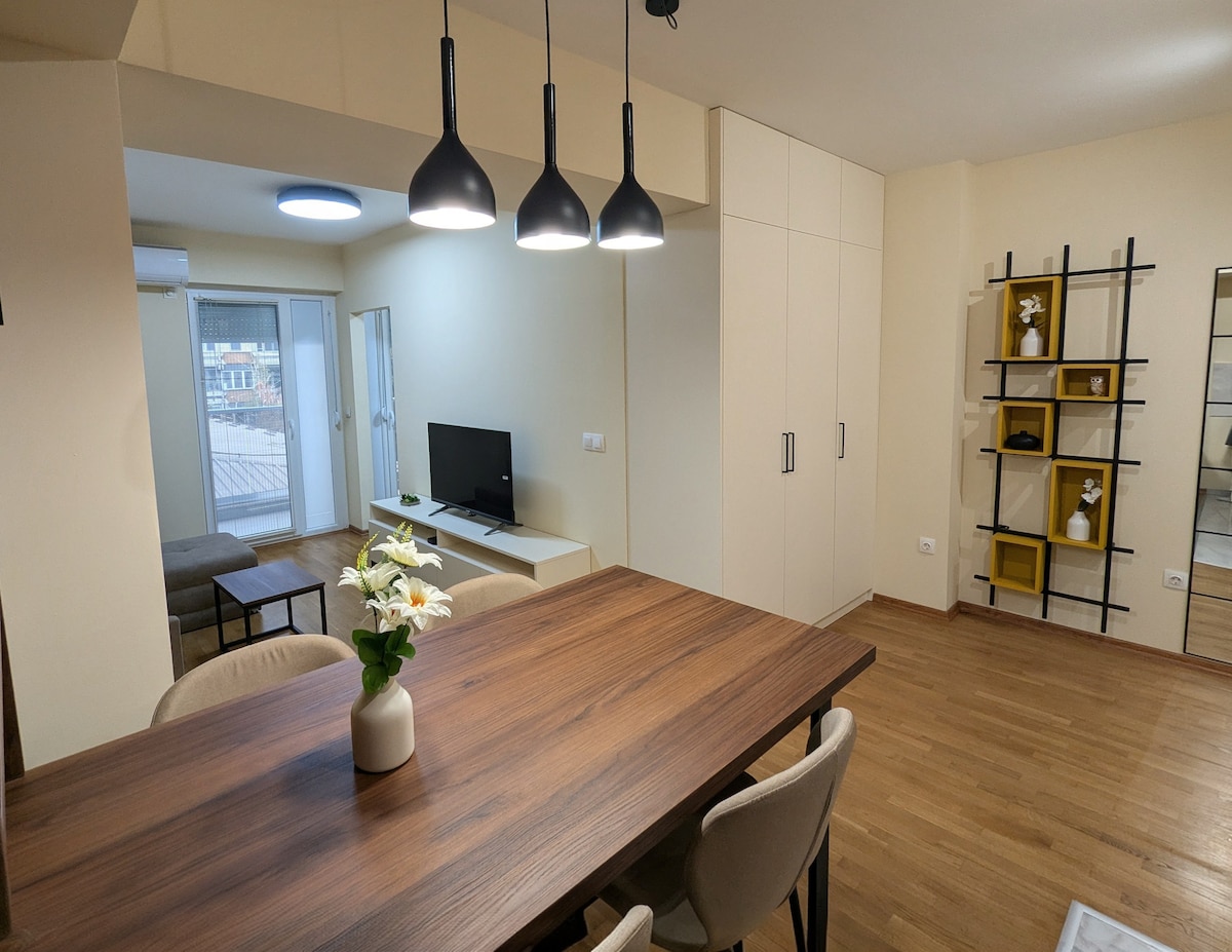 Une retraite moderne et élégante au cœur de Skopje, parfaite pour le confort, le travail et les loisirs. Parfait pour les couples ou les petites familles, l'appartement peut accueillir jusqu'à 2 adultes et 2 enfants. Nous sommes situés dans un quartier résidentiel calme, à seulement 10 minutes à pied de la gare routière et ferroviaire principale, et à 10 minutes à pied de la place principale et de toutes les attractions de Skopje.