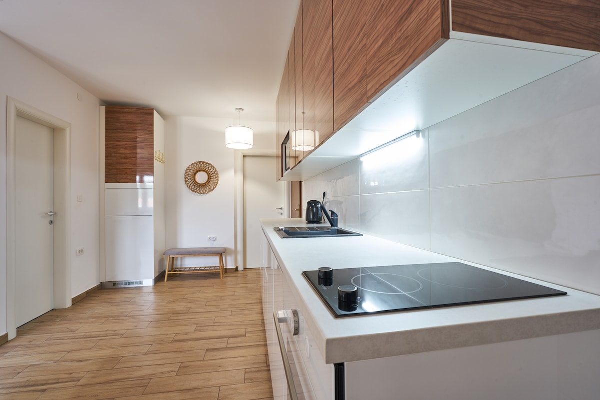 Suite moderne exclusive de 2 chambres à 2 mètres de la plage. La suite fait partie de Pearl House située dans un petit endroit touristique dans la baie tranquille de l'Adriatique. Télévision dans chaque chambre Cuisine entièrement équipée Climatisation Salle de bain avec douche à l'italienne Piscine Wifi et stationnement gratuit Bouée dans la mer appartenant à la Pearl House en face de la suite. L'amarrage peut supporter un navire jusqu'à 7 m. Pour entrer et sortir, vous pouvez accoster brièvement au quai devant la suite.