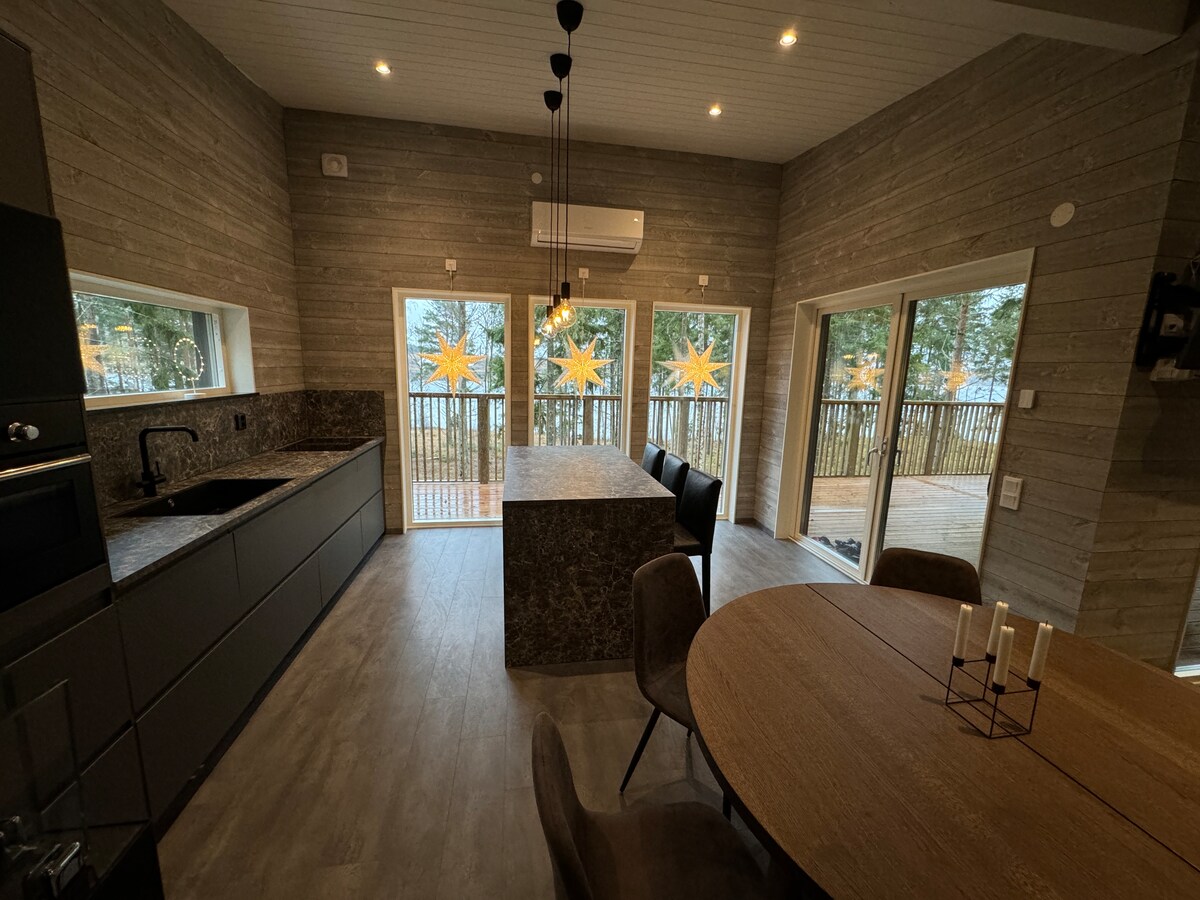 Magnifique chalet à louer au bord de l'eau avec tout le confort ainsi qu'une cheminée et un sauna ainsi qu'un poteau de recharge. Le bois est inclus. 5 lits. 2 lits séparés et 1 lit superposé et canapé-lit pour 1 personne. Cuisine neuve entièrement équipée avec lave-vaisselle(2023) et salle de bain avec douche et chauffage au sol. Le poste de recharge fournit jusqu'à 11 kWh(3 SEK/kWh). Le wifi et la télévision par satellite sont inclus et Chromecast