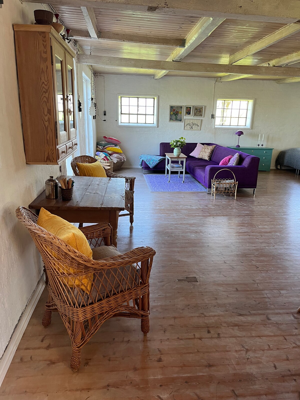 Nous avons construit notre petite annexe il y a quelques années pour nos petits-enfants (principalement des filles), d'où le nom « Hønsehuset » (le poulailler). En tant qu'ancien constructeur de bateaux, il m'a été facile de construire une petite cabane, en gardant à l'esprit la fonction, le confort et l'esthétique. L'annexe est indépendante et donne également accès à un coin de jardin calme et ensoleillé. Nous vivons au bas de Gudhjem, nous avons donc à la fois des falaises et le port de Nørresand avec plusieurs lieux de baignade attrayants à moins de 100 mètres.