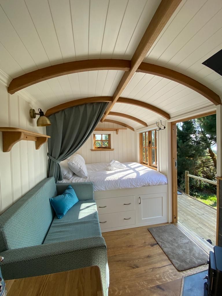 Camp de Rêves dispose de 3 cabanes de berger luxueuses réservées aux adultes situées dans un champ inférieur privé avec vue panoramique sur la mer et le coucher du soleil – l'endroit idéal pour se détendre. Chacune peut accueillir 2 personnes avec un lit king-size, un poêle à bois, un radiateur, une salle d'eau, une cuisine avec produits de base, une connexion Wi-Fi et une terrasse privée avec mobilier et barbecue au gaz. Le champ inférieur est réservé aux voyageurs de la cabane, offrant une paix et une intimité totales. Les voyageurs peuvent également avoir accès au four à pizza, à la pétanque, à la grange de jeux, à la buanderie et plus encore. Site fermé avec parking.