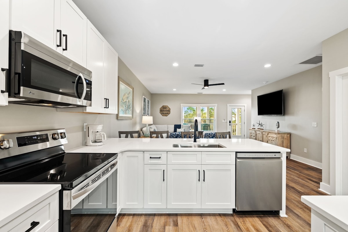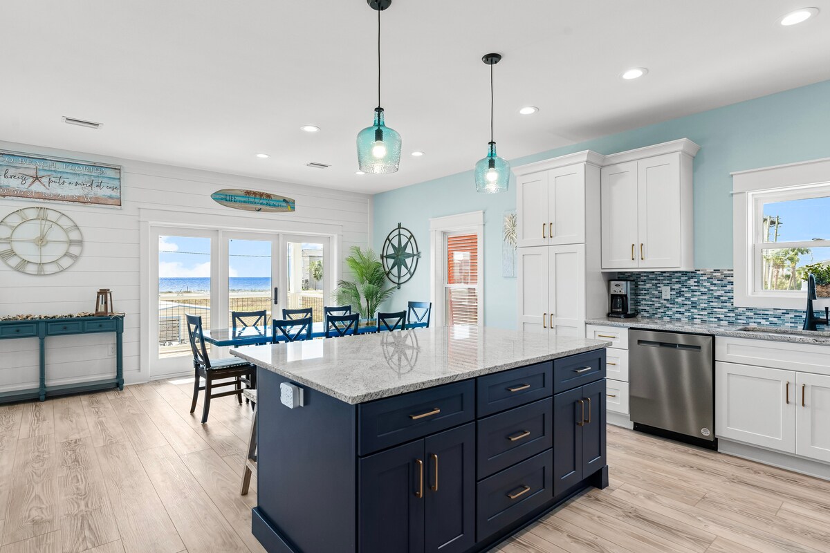 Bienvenue à Nash in the Sand. Votre location de maison de luxe sur la plage à Windmark Beach. Cette maison de luxe de nouvelle construction offre tout ce dont vous avez besoin pour des vacances incroyables à la plage. Située à distance de marche ou à quelques minutes en voiturette de golf de la PLAGE. Cette maison unifamiliale offre un luxe côtier avec 4 chambres spacieuses, 2 salles de bains, une cuisine entièrement équipée, une buanderie, des porches avant et arrière. Le sol est en LVP, comptoirs en quartz, appareils électroménagers en acier inoxydable, draps et oreillers de luxe.
