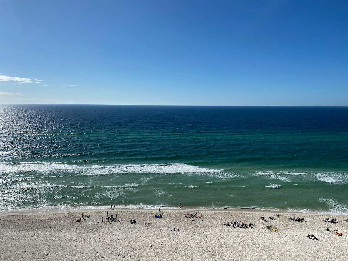 Rare first floor unit with gorgeous views. From your private patio to the water's edge in seconds. Easy breezy- no elevators or stair.. Fresh, modern studio w/ a comfortable king-sized bed and deck chairs to watch the stunning Emerald Coast sunsets. Quick stroll to restaurants, bars, and attractions. Beach chair w/ umbrella provided to guests March 15th - October 31st . Walk to new Top Golf. Construction in parts of the building Fall '25 - Spring '26 . Pool closed this winter for repairs.