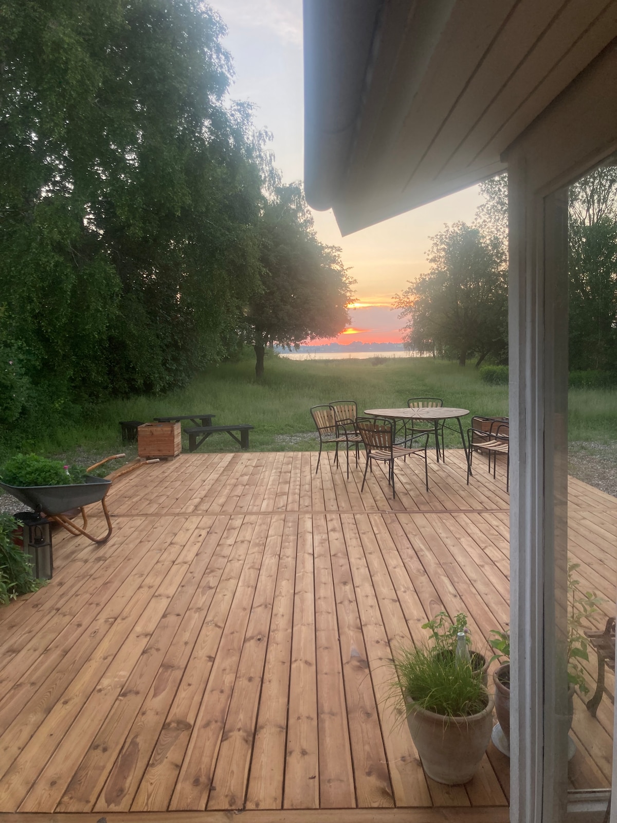 Vous entrez dans une maison et un jardin remplis de tranquillité et d'amour. La maison peut accueillir quatre personnes qui dorment, et il y a deux autres places de couchage dans l'annexe. En été, la maison est située dans un jardin en fleurs avec des arbres fruitiers et des fleurs, et il est possible de s'asseoir autour d'un feu le soir. La terrasse fait le tour de la maison et il y a du soleil toute la journée. En hiver, amusez-vous devant le poêle à bois et admirez les étoiles depuis l'intérieur du salon. La maison est à seulement 250 mètres du fjord Sidinge, où vous pouvez vous baigner et vous promener