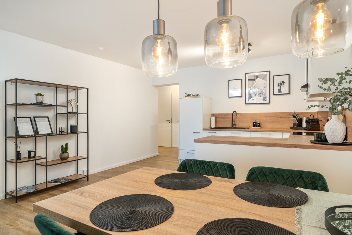 Nous vous proposons un bel appartement bien entretenu au 1er étage d'une maison pour deux familles. L'appartement mesure 78 m² répartis sur 3 chambres, cuisine et salle de bains. La cuisine ouverte de haute qualité et accueillante jouxte le salon et la salle à manger. 2 chambres peuvent accueillir jusqu'à 4 personnes. Par beau temps, le balcon ensoleillé invite à des soirées barbecue confortables. L'autoroute A2/33 est à seulement 1 km. Les commerces et la gastronomie sont à distance de marche.