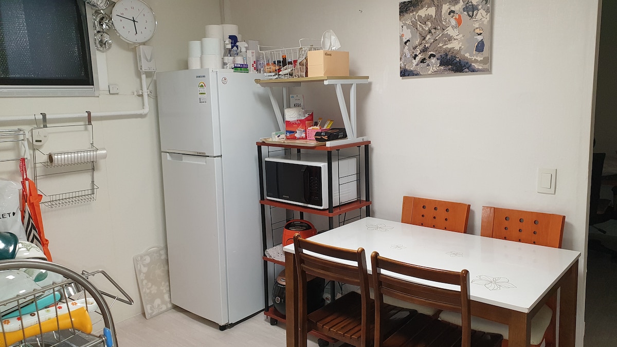 ✔ Espace/Installations - Lit Queen Size - Linge de lit d'hôtel - Vitrage, table, chaise d'intérieur - TV murale -Vous devez vous connecter à Netflix gratuitement/YouTube/OTT ! (La diffusion générale ne fonctionne pas) - Chandelles parfumées, objets - Lave-linge, sèche-linge - Chargeur de smartphone ✔ Cuisine - Réfrigérateur intégré (réfrigérateur/congélateur) - Micro-ondes - Induction - Port électrique - Vaisselle, cuillères, verres à vin, tasses à café (chaud, glace) - Ensemble de couverts (cuillère/baguette/fourchette/couteau/couteau à beurre) - Ensemble d'ustensiles de cuisine (couteau, pince, louche, spatule, ciseaux) - Bols, assiettes à pâtes, saladiers, décorations - Casserole, poêle, couteau, planche à découper, ouvre-bouteille ✔ Salle de bain - Eau chaude à haute pression - Shampooing, traitement, gel douche - Serviette de bain - Serviette - Bidet - Sèche-cheveux - Brosse à dents jetable et dentifrice - Sèche-cheveux - Purificateur d'air