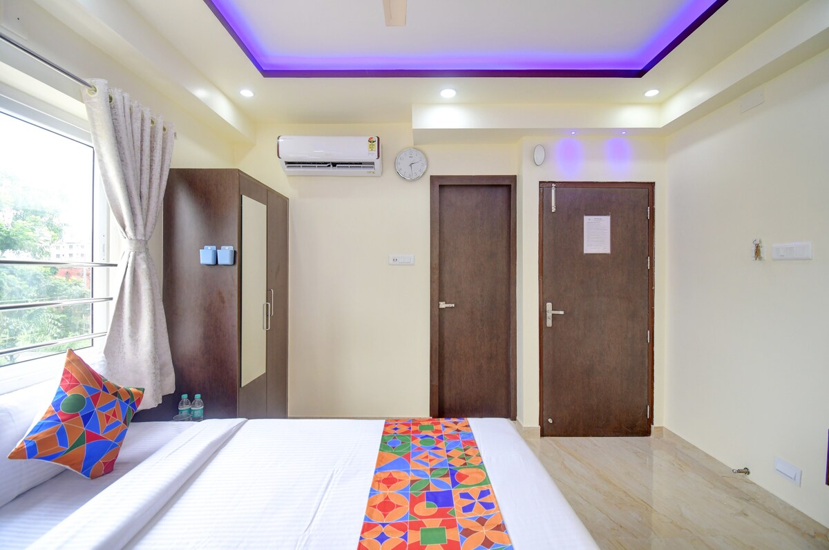 Le Bengal Nest est un 2BHK de luxe à Newtown, Kolkata, décoré avec goût avec de l'artisanat indien et un éclairage d'ambiance. Il dispose de deux chambres climatisées, de deux salles de bains, d'une cuisine entièrement équipée (cuisinière, réfrigérateur, micro-ondes, etc.), d'une machine à laver, d'une télévision, d'une connexion Wi-Fi et d'un balcon privé. Situé dans un quartier paisible et bien desservi, à proximité de Tata Medical et du CNCI, il est parfait pour les couples, les familles et les petits groupes.