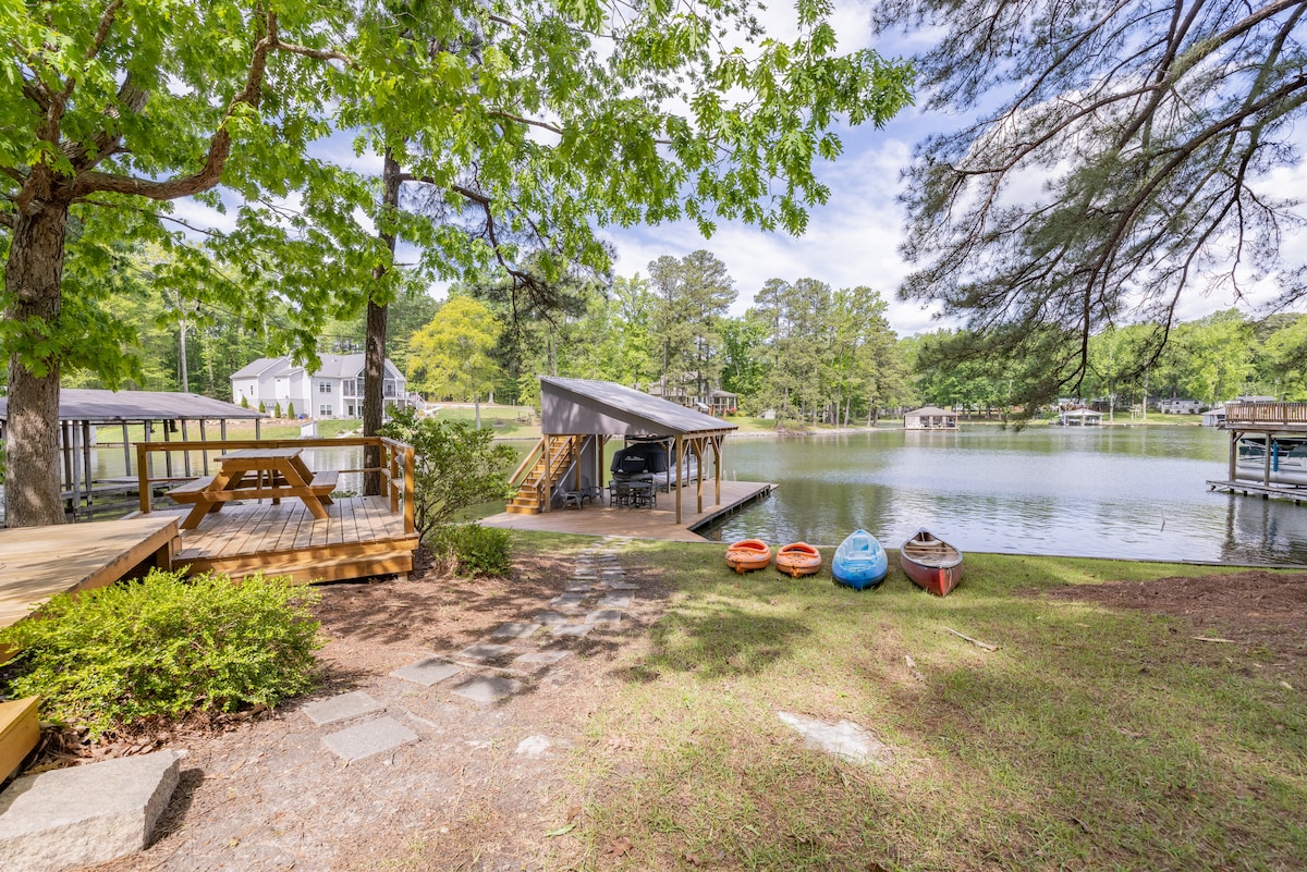 Détendez-vous en famille dans cette paisible maison de ville au bord de l'eau sur le lac Gaston avec un emplacement central pratique ! Proche de l'épicerie, des restaurants et de la marina où vous pouvez accéder à des locations de bateaux/jet-ski et plus encore ! Kayaks et planches de paddle à la disposition des voyageurs. Cuisine entièrement équipée. Foyer à gaz et barbecue. Balcons avec vue imprenable sur le lac et la faune juste à côté des chambres ! Espace arcade et bar dans le deuxième espace de vie. Les voyageurs peuvent s'étendre et se détendre après une journée sur le lac ! Bateau disponible. Nouveau et propre !
