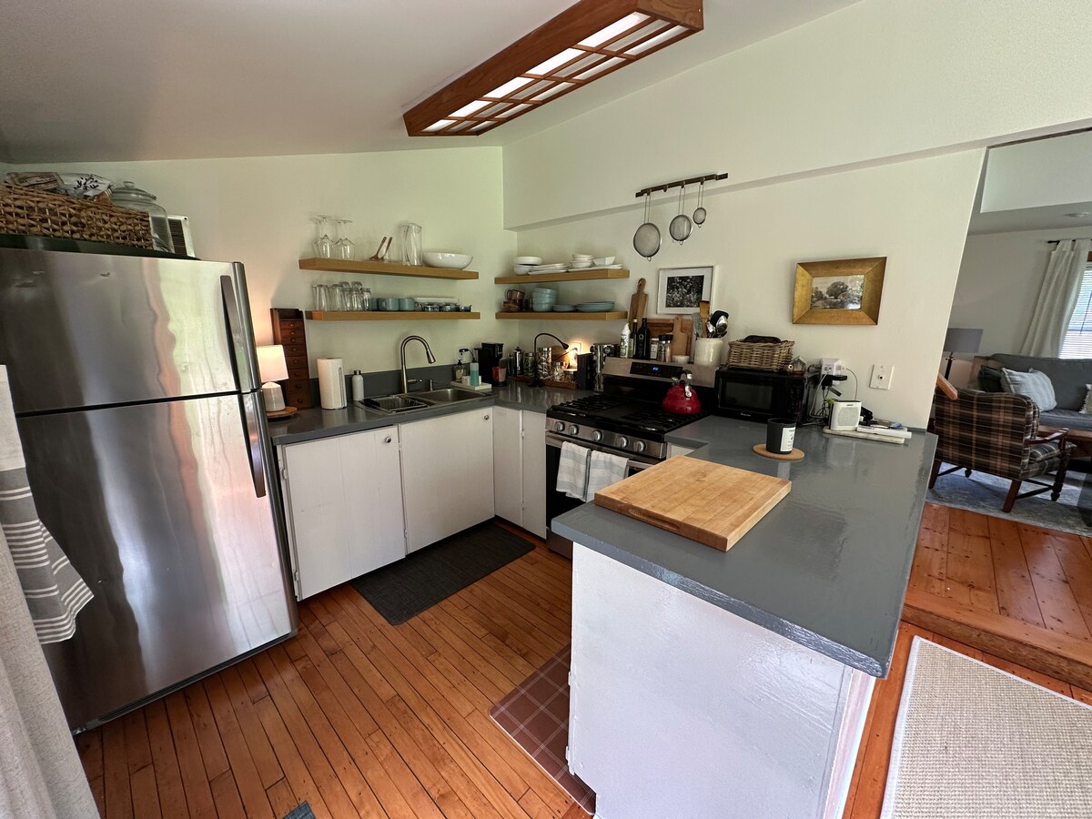 Lumineux et accueillant ! Bienvenue dans notre charmant chalet, une élégante retraite de 2 chambres et 2 salles de bain près de Shales Brook. Détendez-vous les soirées fraîches à côté du poêle à bois Malm vintage. Profitez du confort moderne avec la climatisation centrale, un porche grillagé et une terrasse surplombant les eaux tranquilles de Shales Brook. Les sons apaisants du ruisseau améliorent votre séjour. Situé à proximité des fabuleuses attractions du Berkshire, des randonnées fantastiques, à 15 minutes de la ville de Lee, à quelques minutes de Jacob's Pillow et à 20 minutes de Tanglewood !