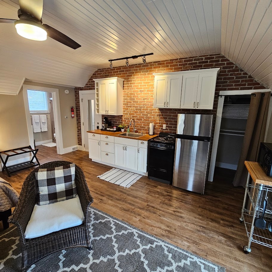 Il s'agit d'un STUDIO AU DEUXIÈME ÉTAGE confortable adapté à une personne ou à un couple. Le logement dispose d'une kitchenette complète, d'un lit King Size, d'une salle de bain privée complète avec douche à l'italienne, d'une télévision et d'un accès Wi-Fi. Situé près du centre-ville avec un accès proche à de nombreux équipements locaux de Scenic City tels que le Historic Metropolitan Theatre, l'Iowa Falls Boat Club (Scenic City Empress) et le Swinging Bridge. Également à quelques minutes à pied du quartier commerçant de la rue principale et des restaurants.