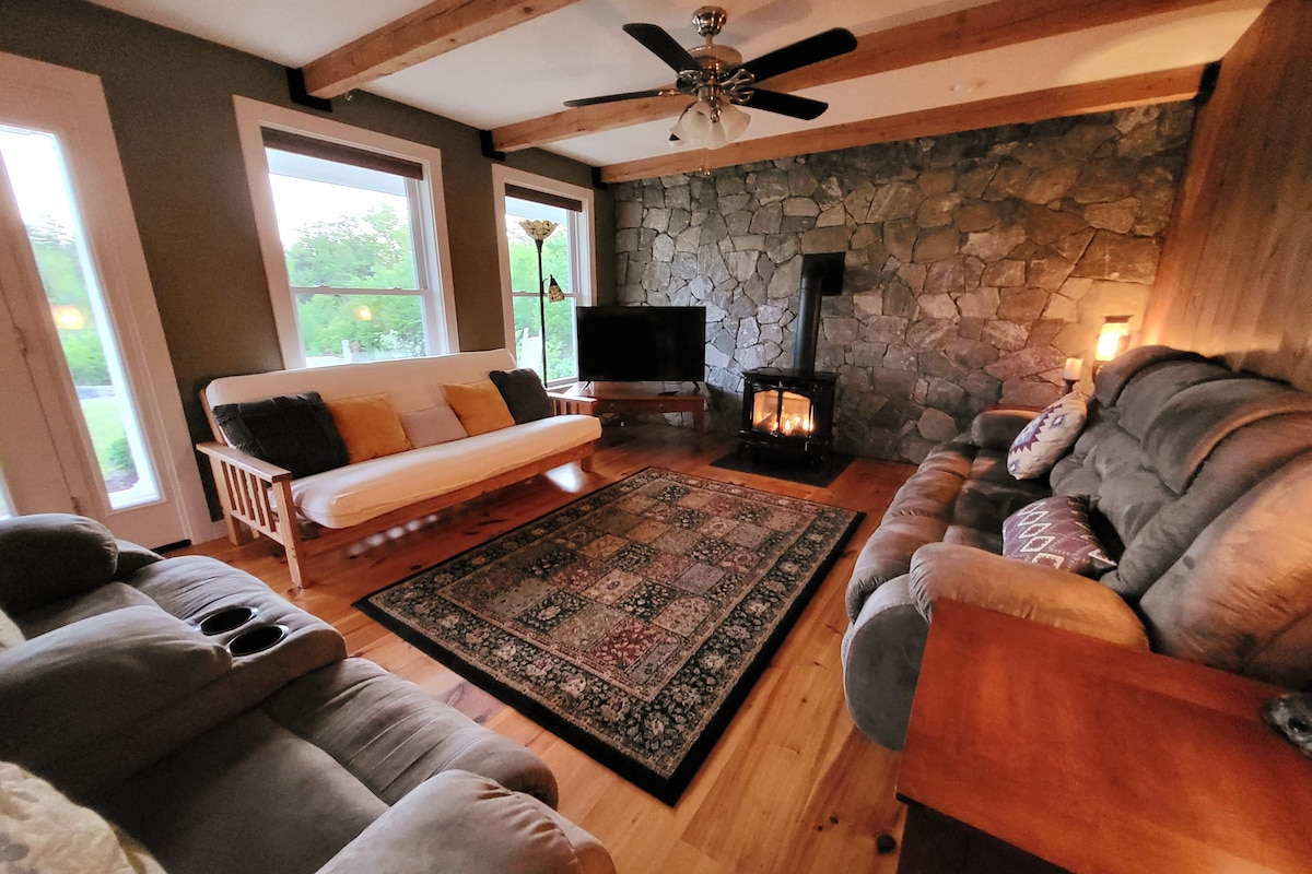 Cet endroit spécial, entièrement rénové, peut accueillir votre réunion de famille ou votre groupe d'amis dans un cadre accueillant. Cette maison unique avec bar privé, spa et table de billard saura satisfaire tous vos besoins de vacances ! Située à proximité de tout, mais absolument calme et privée, propriété de 20 acres ! Elle est située sur une crête avec une vue spectaculaire sur la montagne. Notre maison offre confort et divertissement. La propriété vous offrira une expérience complète de vacances dans les bois. C'est exactement ce dont vous avez besoin !
