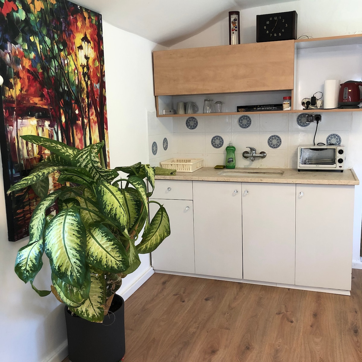 Séjournez dans ma luxueuse maison de 3 chambres dans un village tranquille du centre d'Israël, avec un plafond de 6 mètres de haut et un mélange unique de pop art haut de gamme et de décoration vintage. Profitez de la vue sur le lever du soleil depuis la chambre des maîtres et du coucher du soleil depuis la terrasse panoramique avec jacuzzi et douche extérieure. Comprend une cuisine entièrement équipée, une chambre pour enfants avec lits superposés, une chambre sûre (mamad) avec aires de travail et de jeux, une connexion Wi-Fi rapide, Netflix, un lave-linge et un sèche-linge. Parfait pour ceux qui recherchent le confort et le style !