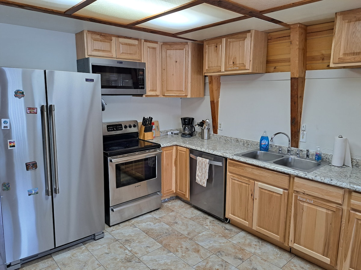 Notre cabane près de Yellowstone est entièrement équipée de toutes les commodités dont vous avez besoin pour un séjour confortable. Vous apprécierez la sensation rustique mais moderne qui provient des plafonds en bois et des garnitures, des meubles faits à la main et des plans de travail en granit. La cabane dispose de deux lits queen size, d'un lit King Size californien et de deux salles de bain complètes. Cette cabane est adaptée aux enfants et facilement accessible depuis l'autoroute 20. Il y a un grand parking et nous avons également accès à une rampe d'accès pour ceux qui ne peuvent pas utiliser les escaliers.