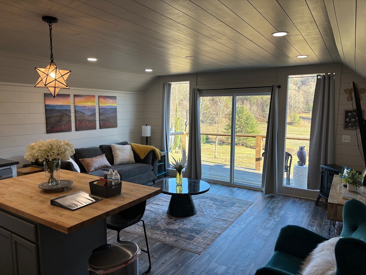 Peak of the Valley est l'escapade parfaite en montagne ! Rural, mais à seulement 4 min. Du centre-ville. Profitez de votre séjour dans un appartement loft confortable, moderne, privé, à l'étage. Un balcon donne sur la vallée et les montagnes pour une vue imprenable sur le lever du soleil et une observation claire des étoiles nocturnes. À quelques minutes de l'entrée du sentier des Appalaches à Dick's Creek Gap. Parfait pour les randonneurs du week-end ou les voyageurs ayant besoin d'un emplacement central pour une escapade rapide. Visitez Tallulah Gorge, Lake Burton, Black Rock Mtn. State Park.