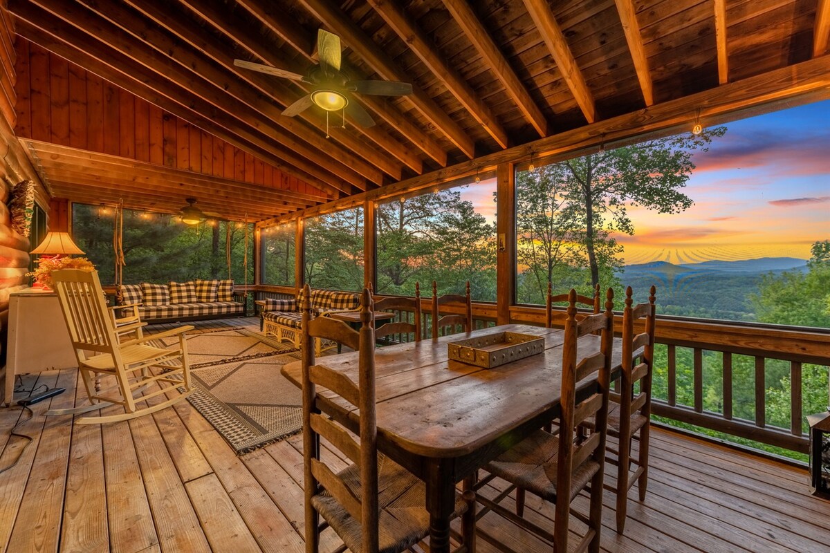 Profitez d'une vue imprenable sur les montagnes toute l'année dans notre confortable cabane à Blue Ridge, en Géorgie ! Parfait pour les familles, notre spacieux chalet de 3 chambres est équipé de 3 salles de bain complètes, de 2 canapés convertibles Queen Size et d'un sous-sol de divertissement. Détendez-vous dans le jacuzzi, profitez de l'air frais de la montagne sur l'un de nos 3 porches grillagés joliment décorés. Avec un foyer et un espace de bureau dédié, il y en a pour tous les goûts. Notre cabane peut accueillir confortablement 12 personnes, ce qui en fait l'escapade idéale pour un grand groupe jusqu'à 12 personnes.