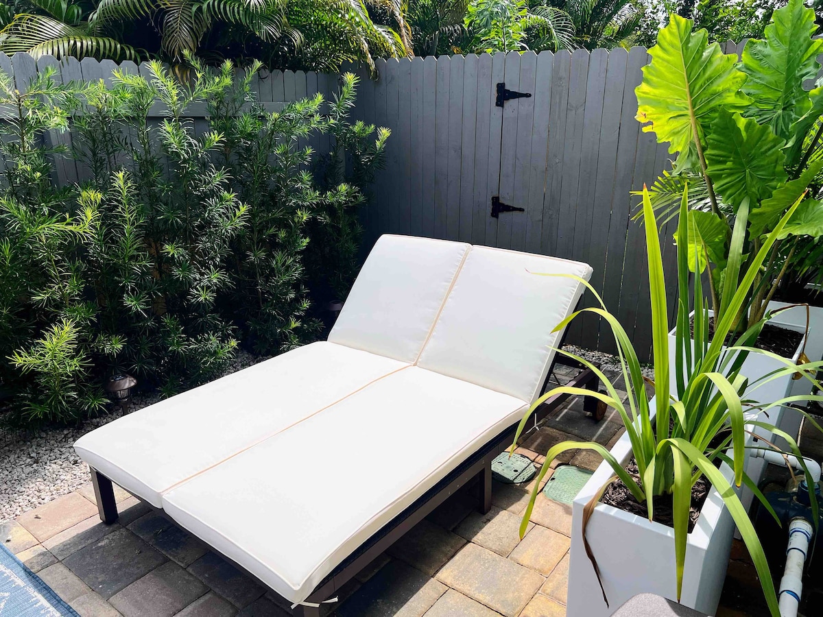 Niché au cœur de Jupiter, à 2,7 miles de la plage, du phare de Jupiter, du Loggerhead Turtle Center, du Rodger Dean Stadium, de Dubois et d'autres parcs d'État, et à proximité du Honda Classic, vous serez à distance de marche ou à vélo d'excellents restaurants, magasins, musique live, danse, et aurez un accès facile à l'I 95 et à la voie de retournement. Ce chalet d'hôtes indépendant dispose d'une allée privée, d'une entrée sans clé, du Wi-Fi, d'une cuisine efficace et bien équipée, de chaises longues, de serviettes, d'un parasol et d'une glacière.