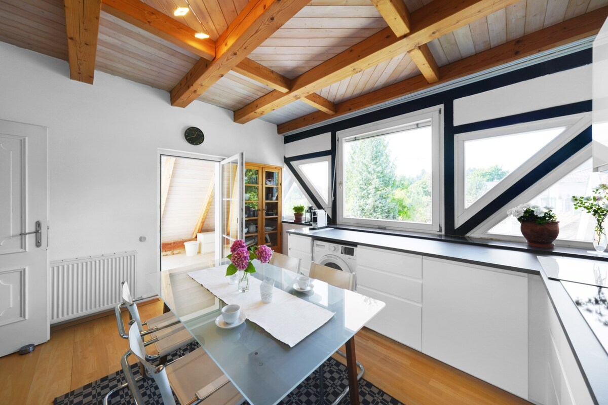 Villa dans le jardin. Appartement complet avec une chambre à coucher, un salon-chambre à coucher, une salle à manger, une nouvelle cuisine entièrement équipée, une salle de bain avec baignoire et WC séparé, au sous-sol avec vue sur le jardin et des sièges dans le jardin. Les chambres sont accessibles séparément par une porte communicante. Possibilité de stationnement pour 1 véhicule sur la propriété. Bonne desserte par les transports en commun.