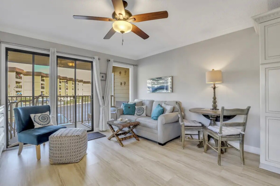 Bienvenue dans votre location de vacances de rêve à Hilton Head Island ! Niché dans un emplacement privilégié, cet appartement exquis offre la quintessence du luxe côtier et de la détente. En entrant, vous êtes accueilli par un intérieur récemment rénové et orné d'un mobilier contemporain, créant une atmosphère accueillante et confortable pour vous et votre famille. Le séjour spacieux est parfait pour se détendre après une journée à la plage, avec des canapés moelleux et une télévision à écran plat pour votre divertissement.