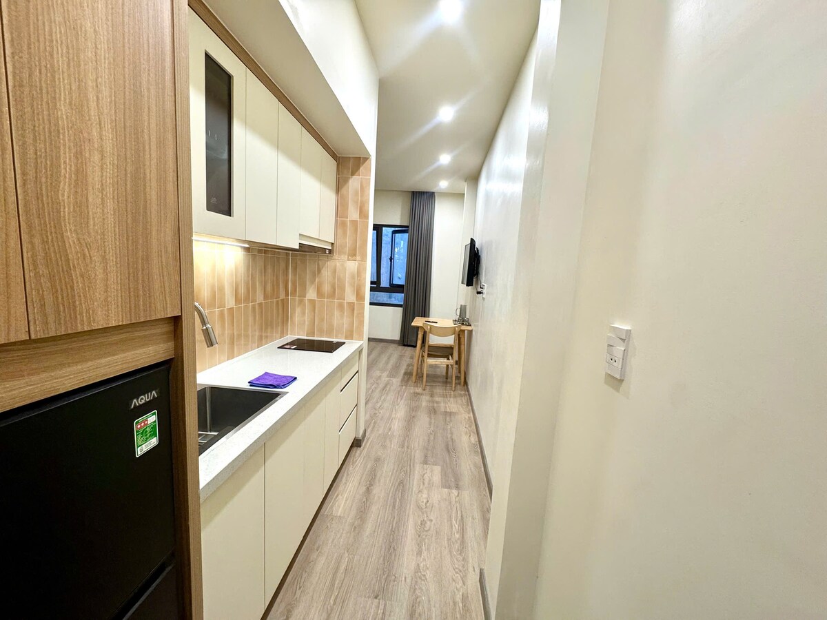 Welcome to our brand-new apartment in Thanh Khê District - a stylish and comfortable space designed for couples, business travelers, and expats, featuring a queen-size bed, a fully equipped private kitchen, a modern bathroom with rain shower, and a work-friendly desk. With warm wood tones, minimalist design, and plenty of natural air and light, the studio feels both relaxing and practical. Enjoy high-speed Wi-Fi, air conditioning, flat-screen TV, and a secure smart lock for flexible check-in.
