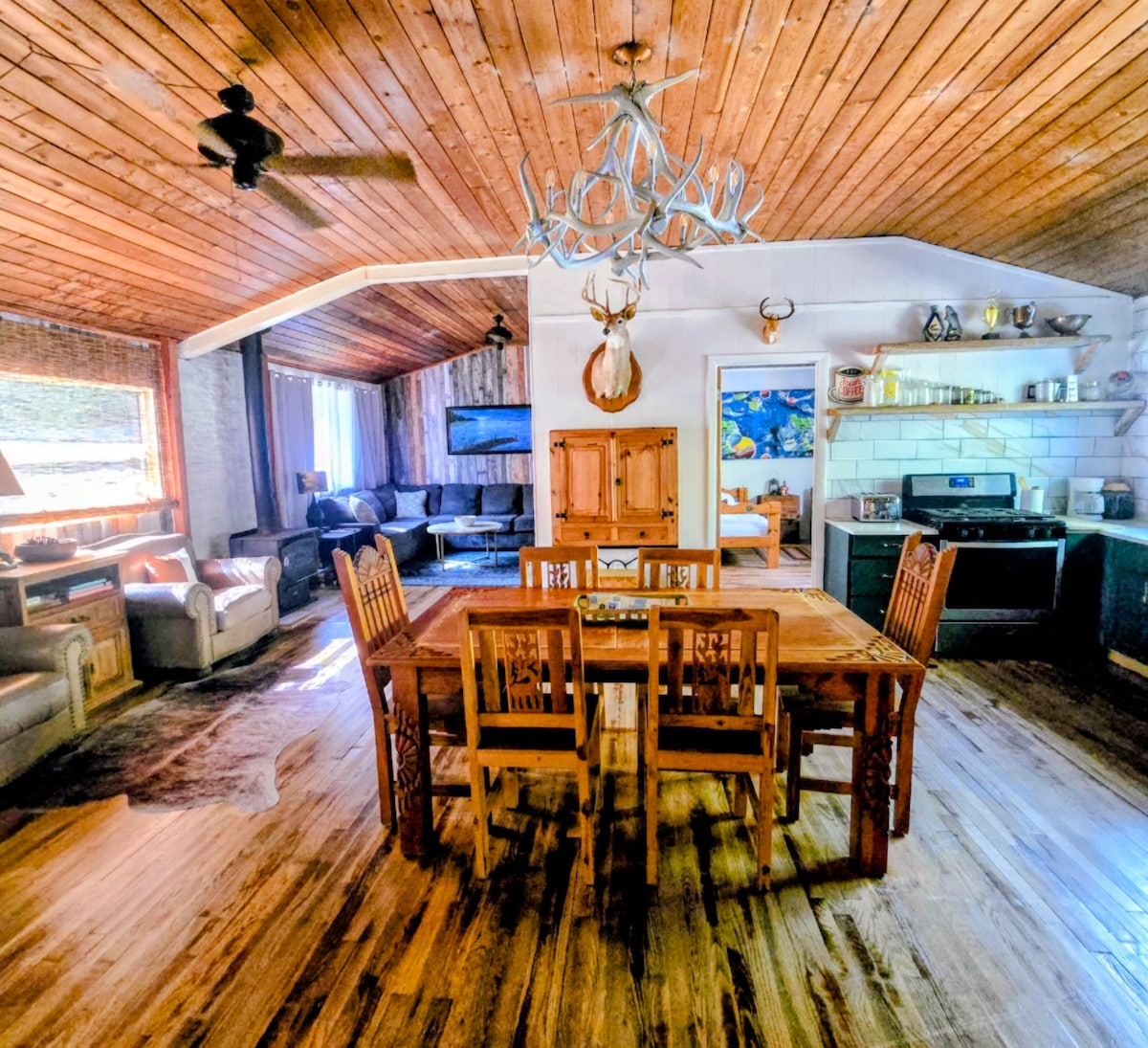 Détente ! Tranquillité ! Couchers de soleil incroyables ! Du plaisir pour tout le monde ! Si c'est ce que vous recherchez, vous l'avez trouvé. Notre maison de plage en bord de lac entièrement rénovée peut accueillir 7 personnes dans des lits. Profitez du coucher de soleil sur le lac depuis le grand porche arrière grillagé. Pour votre plaisir, des planches de paddle, des kayaks, un canoë, un jeu de fer à cheval et bien plus encore sont fournis. La maison est située au centre où vous pouvez visiter plusieurs sources, lacs, rivières, parcs d'État, sentiers, magasins, restaurants et bien plus encore !