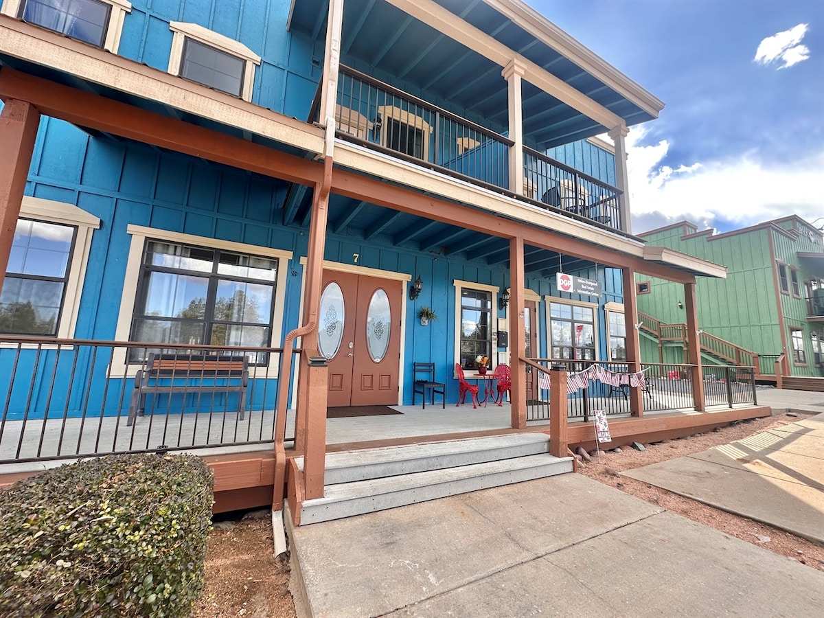 Brought to you by Vacation Your Way, a 2nd floor 2-bedroom/2bath second floor condo in Overgaard, AZ is perched on the edge of the Apache–Sitgreaves National Forest—your front-row basecamp for cool mountain air, tall pines, and trails right outside the door. Perfect for couples, solo adventurers, or remote workers, you’ll enjoy the perk of walking downstairs to the Wild Women Saloon. It’s also fun to explore the legendary Fire in the Sky site, then relax on the balcony under a sky full of stars