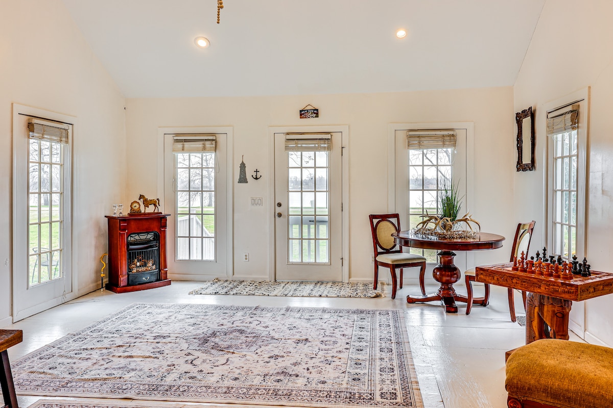 Besoin d'un endroit calme pour vous retirer de l'agitation de la vie quotidienne ? Vous trouverez cela et plus encore à The Camp at Huey Hill Farms. Situé sur une ferme familiale historique qui se trouve en bordure de la crête Macon, il offre de beaux levers et couchers de soleil. Vous et votre famille pourrez faire de la randonnée, du canoë-kayak et du vélo. Ce camp calme de deux étages est entièrement équipé avec : Deux chambres : une avec lit King Size et une complète Salle de bain complète : douche uniquement Cuisine entièrement équipée Lave-linge et sèche-linge Télévision par satellite Wifi